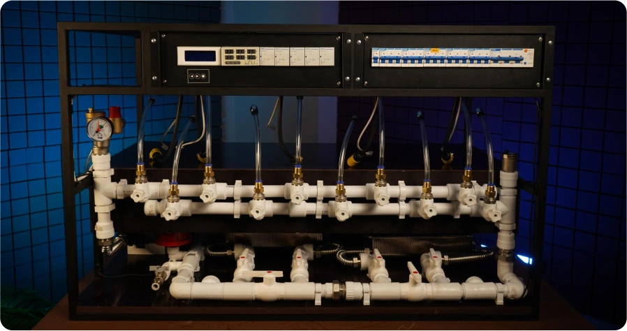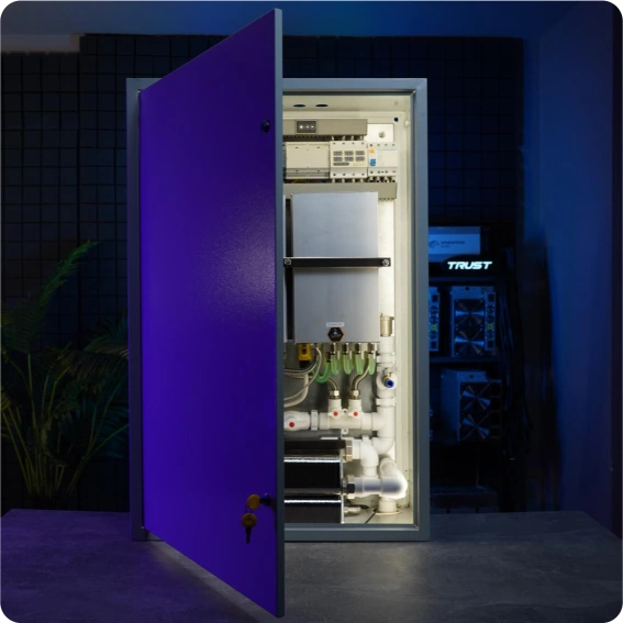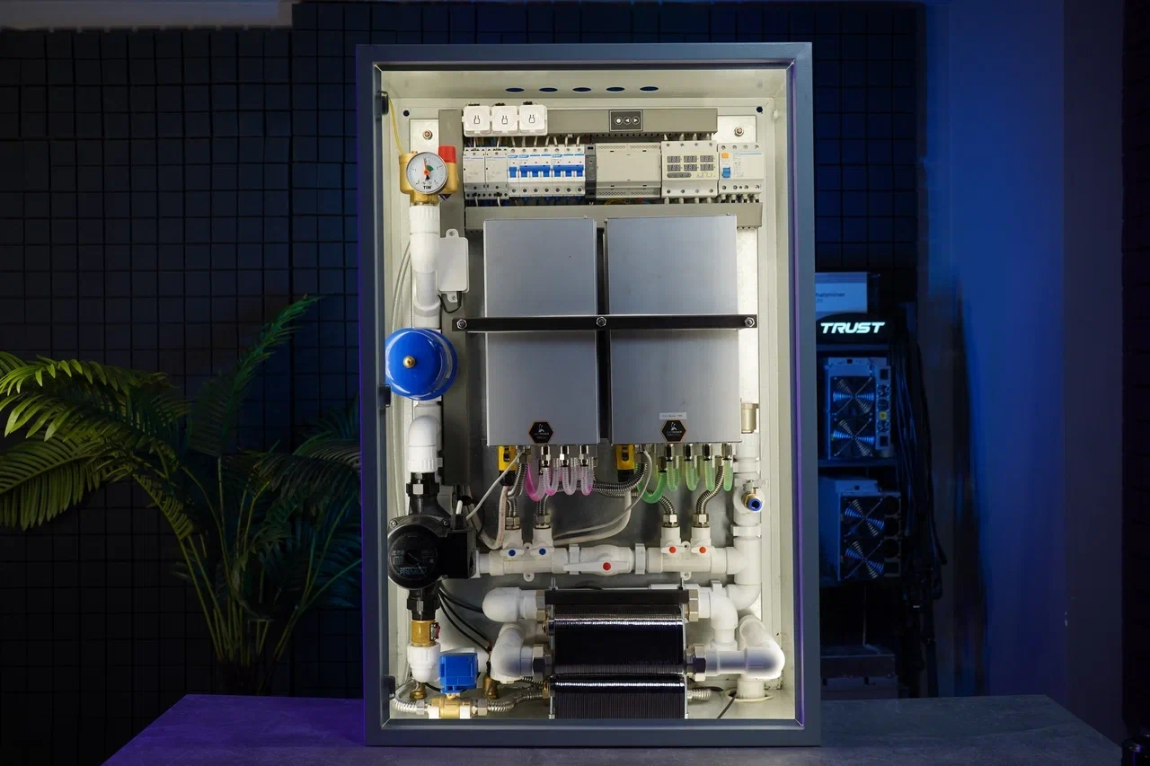 1. Автонастройка системы при подключении 2.Контроль и удержание заданной температуры жидкости на вход в майнеры |